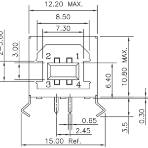 USB-B (USB TYPE-B) USB 2.0 Receptacle Connector 4 Position Through Hole, Right Angle, datasheet