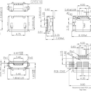 USB – micro B USB 2.0 Receptacle Connector 5 Position Through Hole Horizontal, datasheet