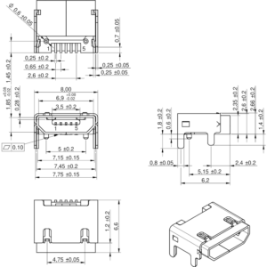 USB – micro B USB 2.0 Receptacle, Right Angle, Through Hole, datasheet