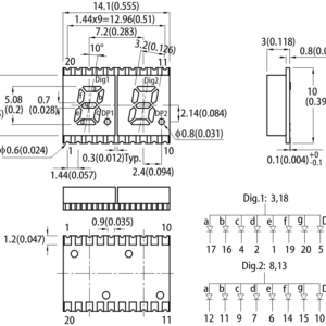 Display 7seg 0.2″ Double Green 20SMD, datasheet
