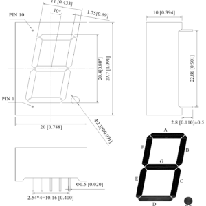 Display 7seg 0.8″ Single Red 10DIP Common Anode, datasheet